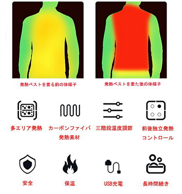 商品のご説明 電熱ベスト 電熱ウェア 加熱ベスト 肩 ヒートベスト 防寒ベスト バッテリー付き 送料無料 11エリア発熱 ヒーターベスト 男女兼用 3段温度調整 ヒーター付き メンズ レディース インナーベスト 電熱ジャケット USB式加熱 軽量 水洗い可 ヒーター11つ内蔵 釣り スキー 備考 カラー:黒 適用対象:男女兼用 加温素材:繊維ヒーター 温度段数:3段 作動電圧:5V 防水レベル(IP):3 サイズ:M、L、XL ※平置きして測定した実寸です。