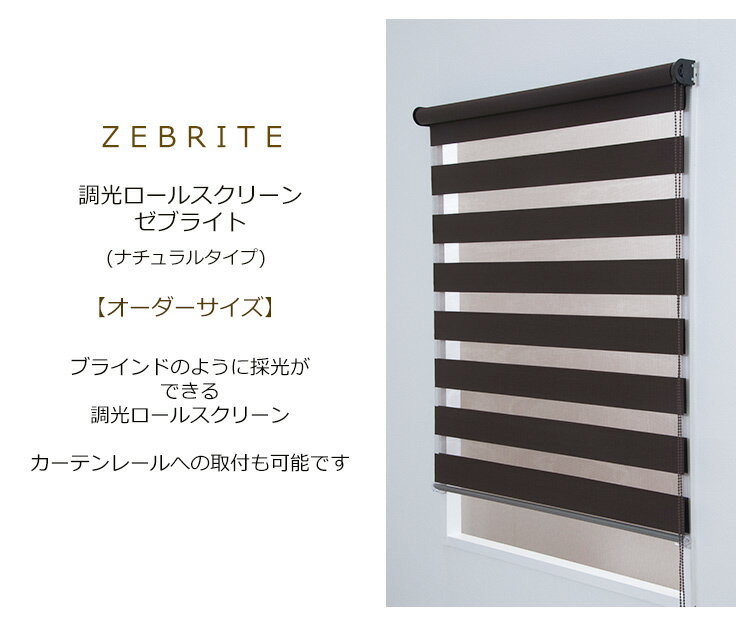 ロールスクリーン ゼブライト 【オーダーサイズ】(ナチュラル) ロールスクリーン フルネス ブラインドのように光を調節 調光 カーテンレール取付可能