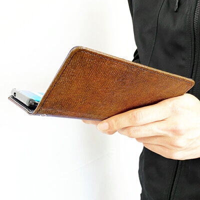 本革男の型押し 手帳型ケース(内側:黒TPU ケース)★