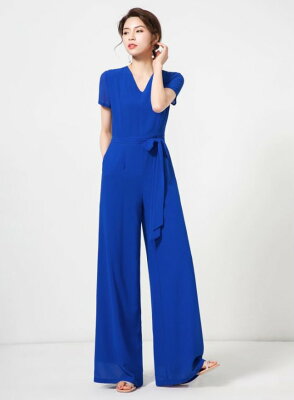 オールインワン レディース かっこいい パンツドレス パーティードレス 袖あり 結婚式 お呼ばれ ドレス パンツ 大きいサイズ 3L 4L 5L 黒 ジャンプスーツ ウエストリボン 半袖 通勤服 オフィス シンプル 20代 30代 40代