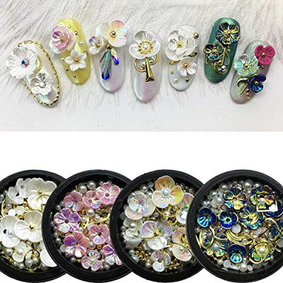 🌟💅【ユニークなデザイン】💅🌟美しく繊細なシェルの花と真珠のリベットの組み合わせで、あなたの爪を魅力的に演出。