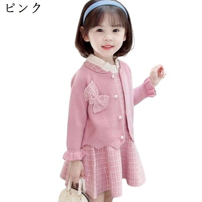 【全店通用10%OFFクーポン】カーディガン キッズ 女の子 秋冬 長袖 前開き 丸首 セーター 可愛い おしゃれ 韓国風 あったか 防寒 保温 子供服 キッズ服 通園 通学 アウター 部屋着 ニットカーディガン 2点セット ワンピース