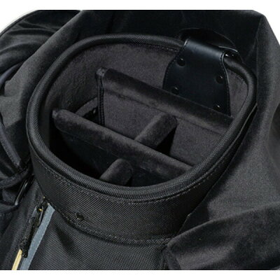 ・ゴルフアンブレラがまっすぐ挿せる専用ホルダーや収納力があり使い分けが可能な4種類のポケット、ティーやマーカー、ボールなどが整理しやすいミニポケットなどを搭載。