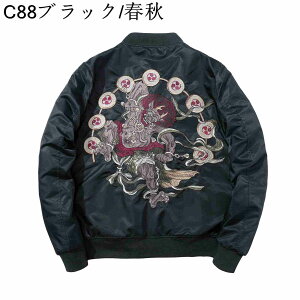 【全店通用10%OFFクーポン】スカジャン メンズ 刺繍 風神 雷神 中綿 厚手 薄手 和柄 大きいサイズ おしゃれ カジュアル ジャケット ブルゾン スタジャン ジャンバー ミサテンジャンパー フライトジャケット ストリート ミリタリー 春 秋 冬
