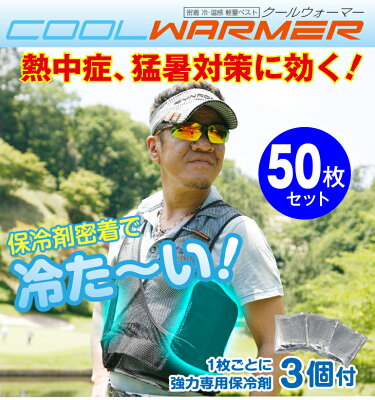 暑さ対策 熱中症予防 クールウォーマー パーフェクトベスト 50枚セット 保冷剤付き 涼しいベスト 軽量メッシュ インナー ウェア 薄手 作業着 大量購入 真夏日 猛暑 冷感 ひんやり 涼しい 気持ち良い 夏 冷たい スポーツ ゴルフ 安い